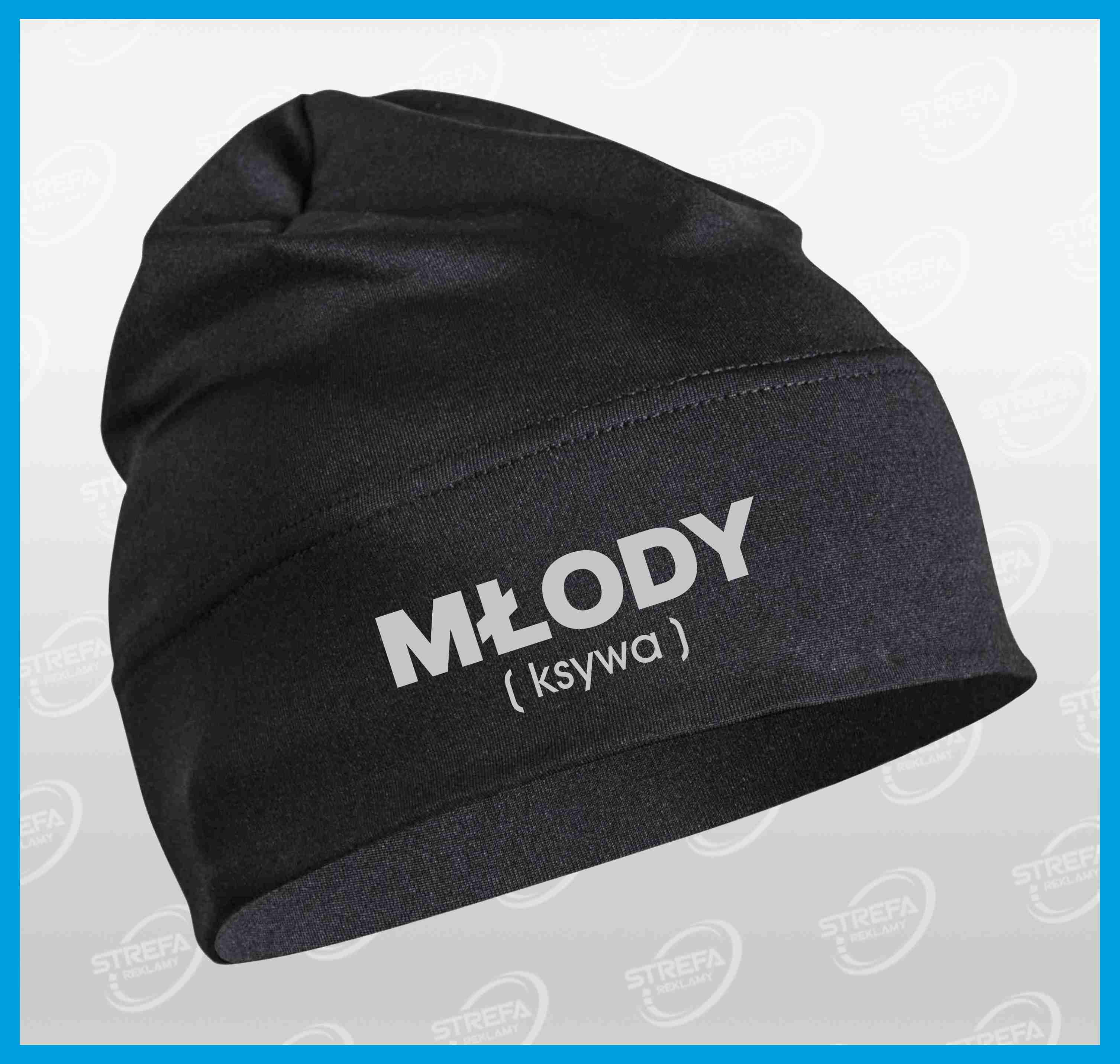 Czapka termoaktywna z nadrukiem dowolnego napisu.
