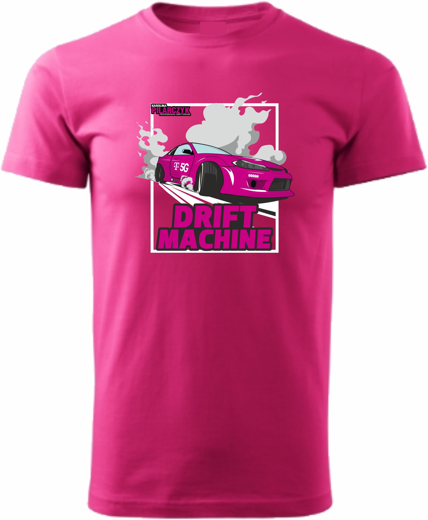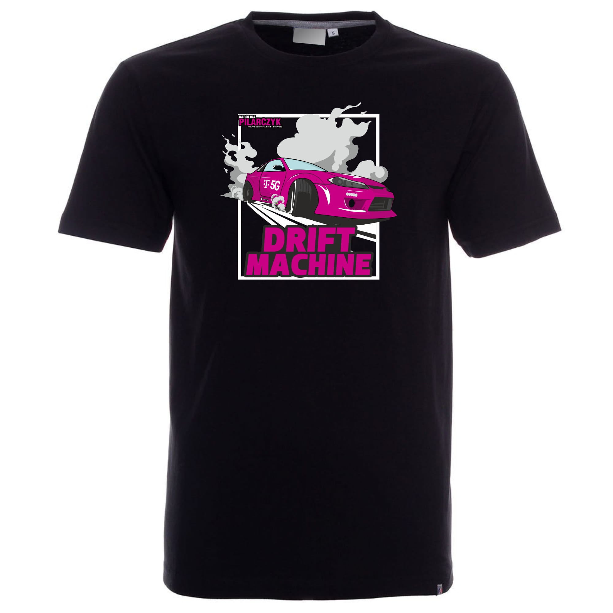Z przodu koszulki widnieje nadruk mistrzyni driftingu - Karoliny Pilarczyk, który dodaje jej charakteru i unikalności.