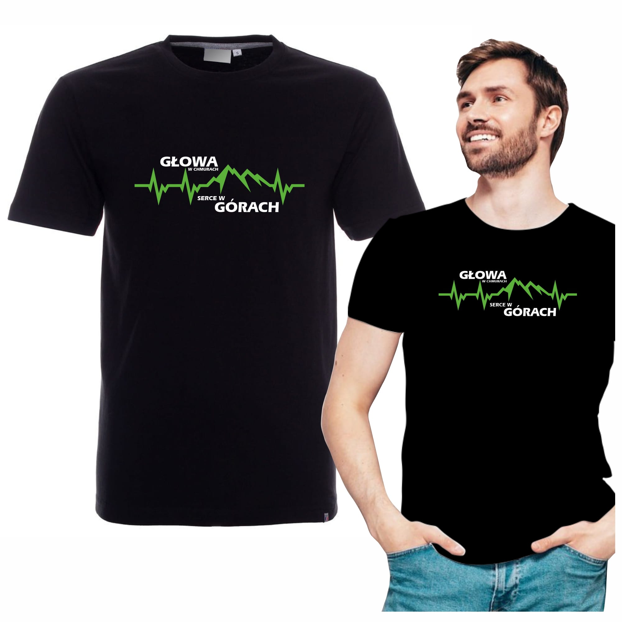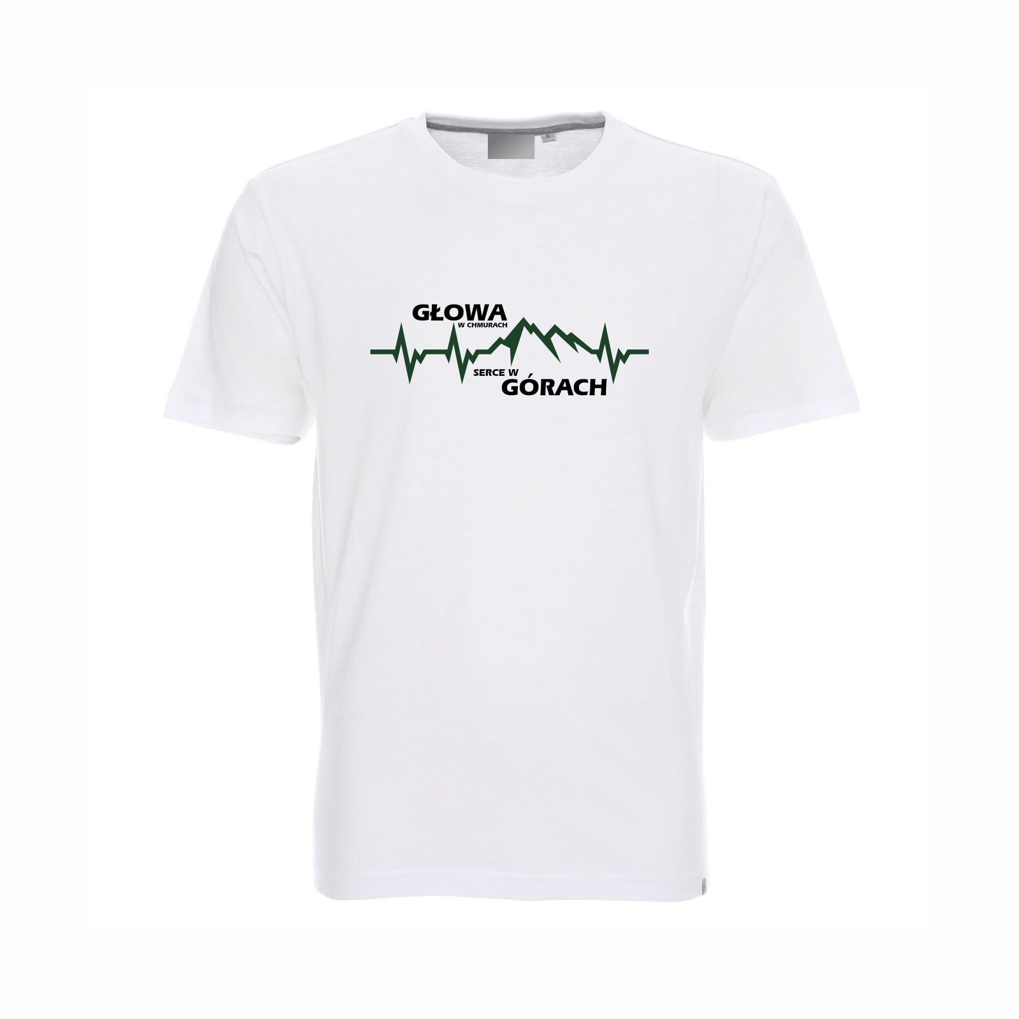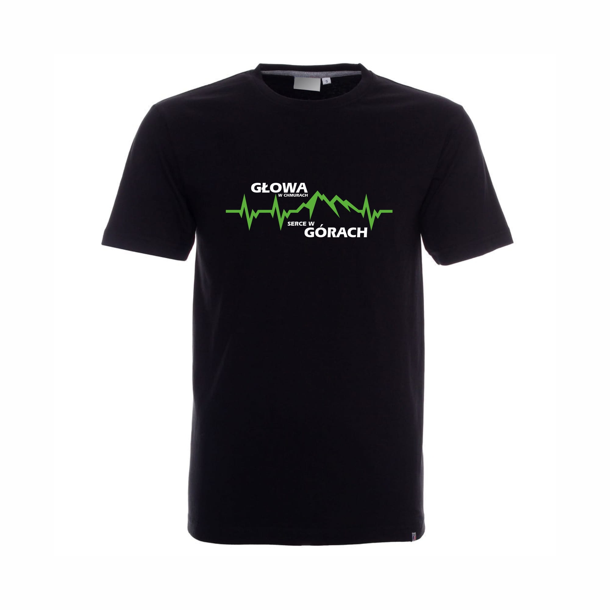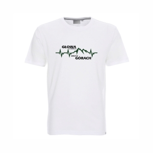 Koszulka męska T-shirt z nadrukiem "Głowa w chmurach, serce w górach EKG"
