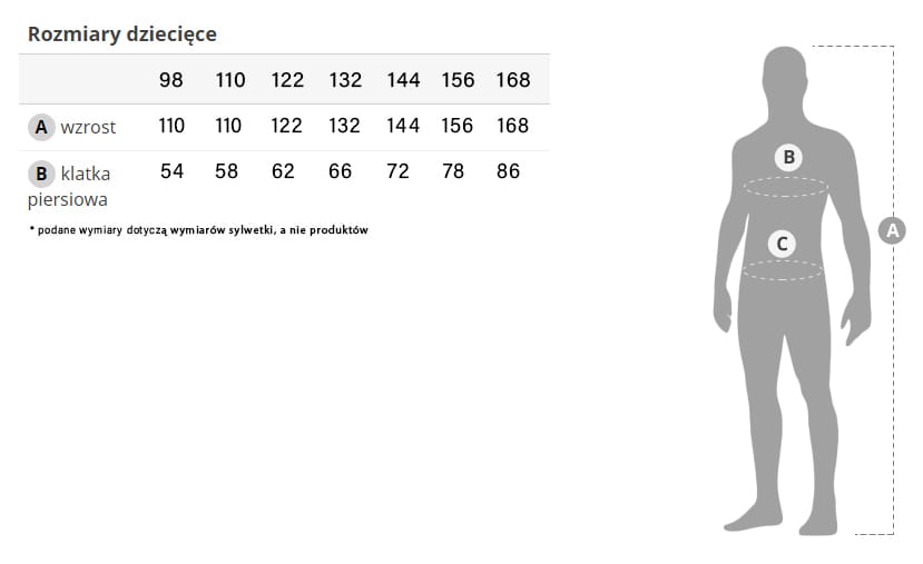 Prosimy zapoznać się z naszą tabelą rozmiarów.