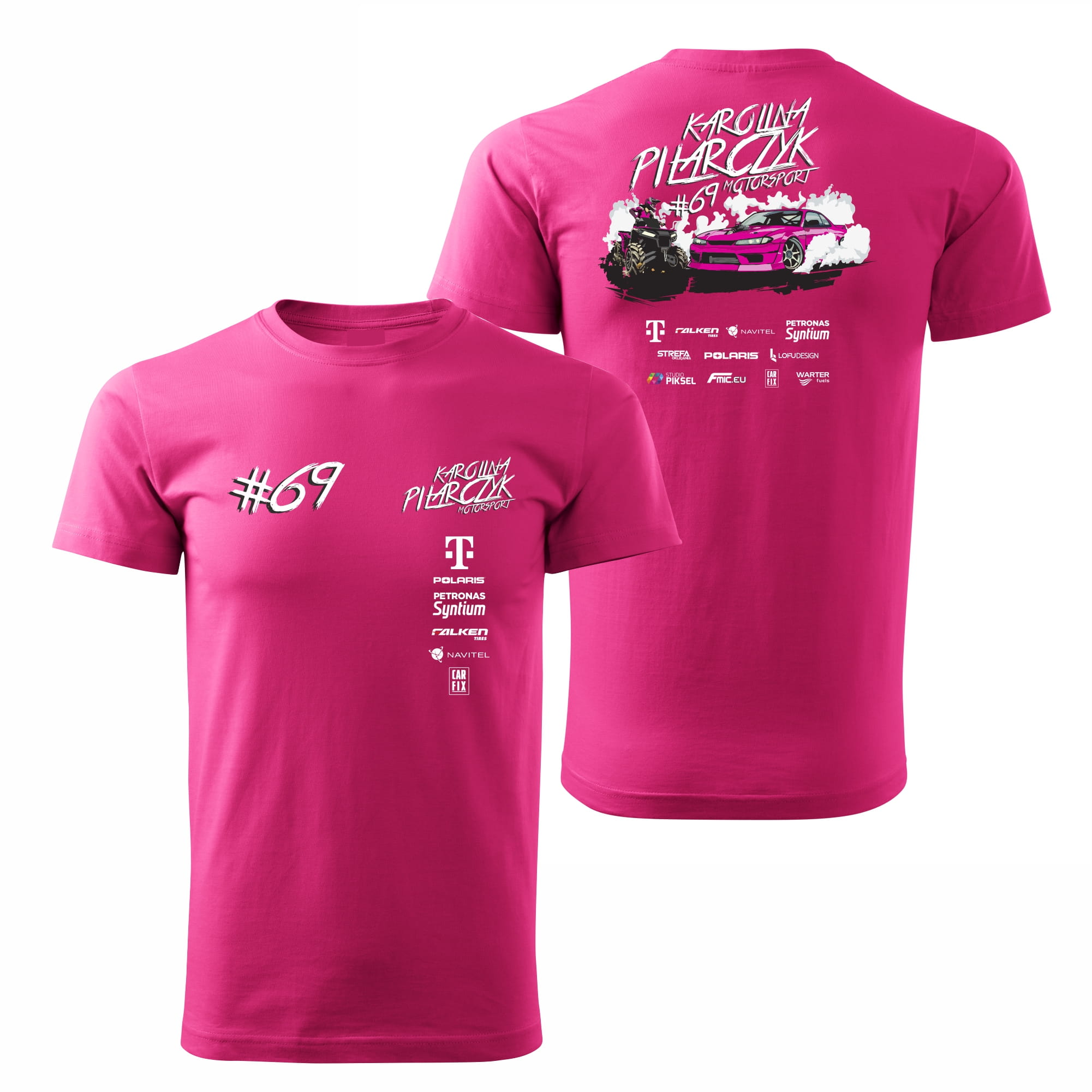 Z przodu koszulki widnieje nadruk mistrzyni driftingu - Karoliny Pilarczyk, który dodaje jej charakteru i unikalności.