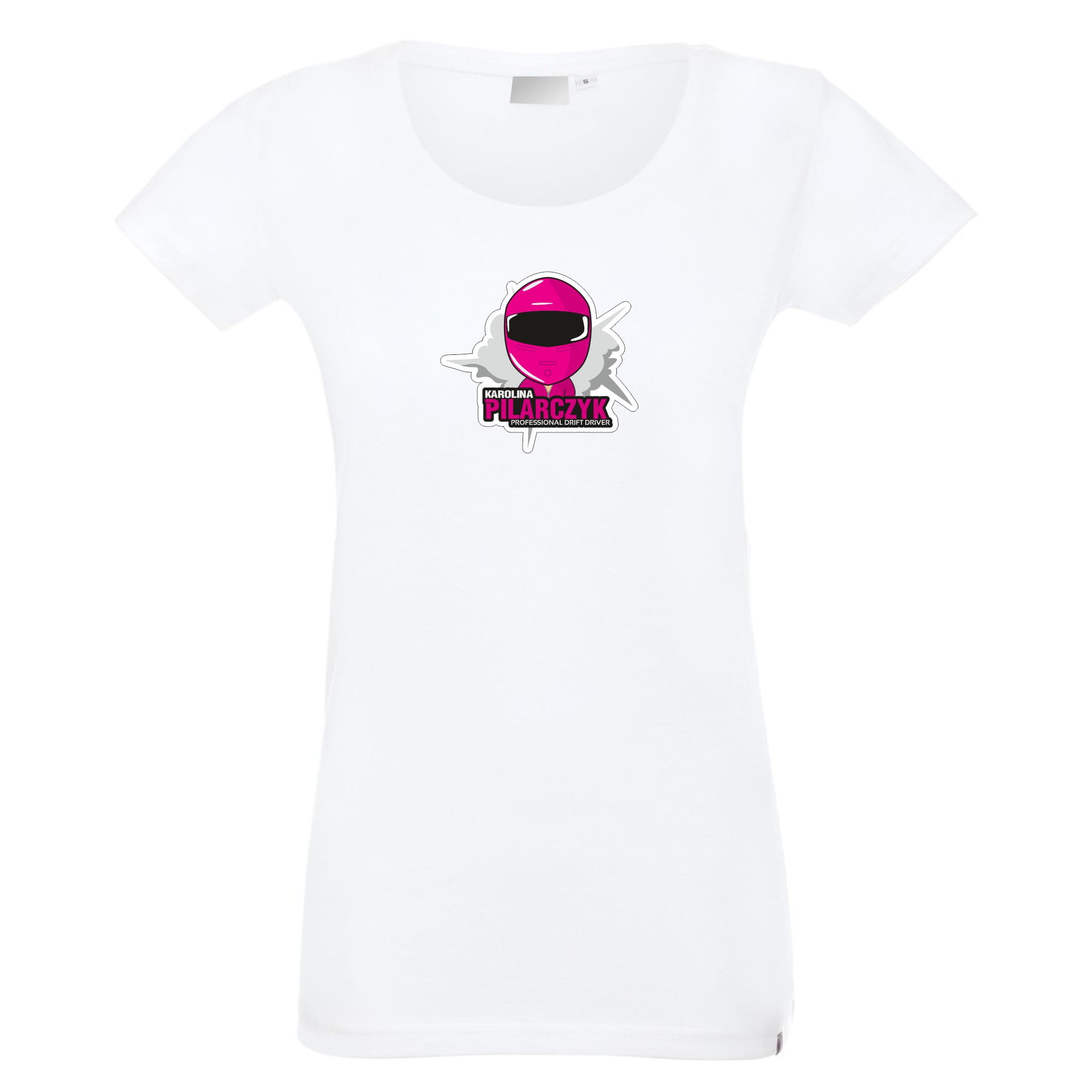 Z przodu koszulki widnieje nadruk mistrzyni driftingu - Karoliny Pilarczyk, który dodaje jej charakteru i unikalności.