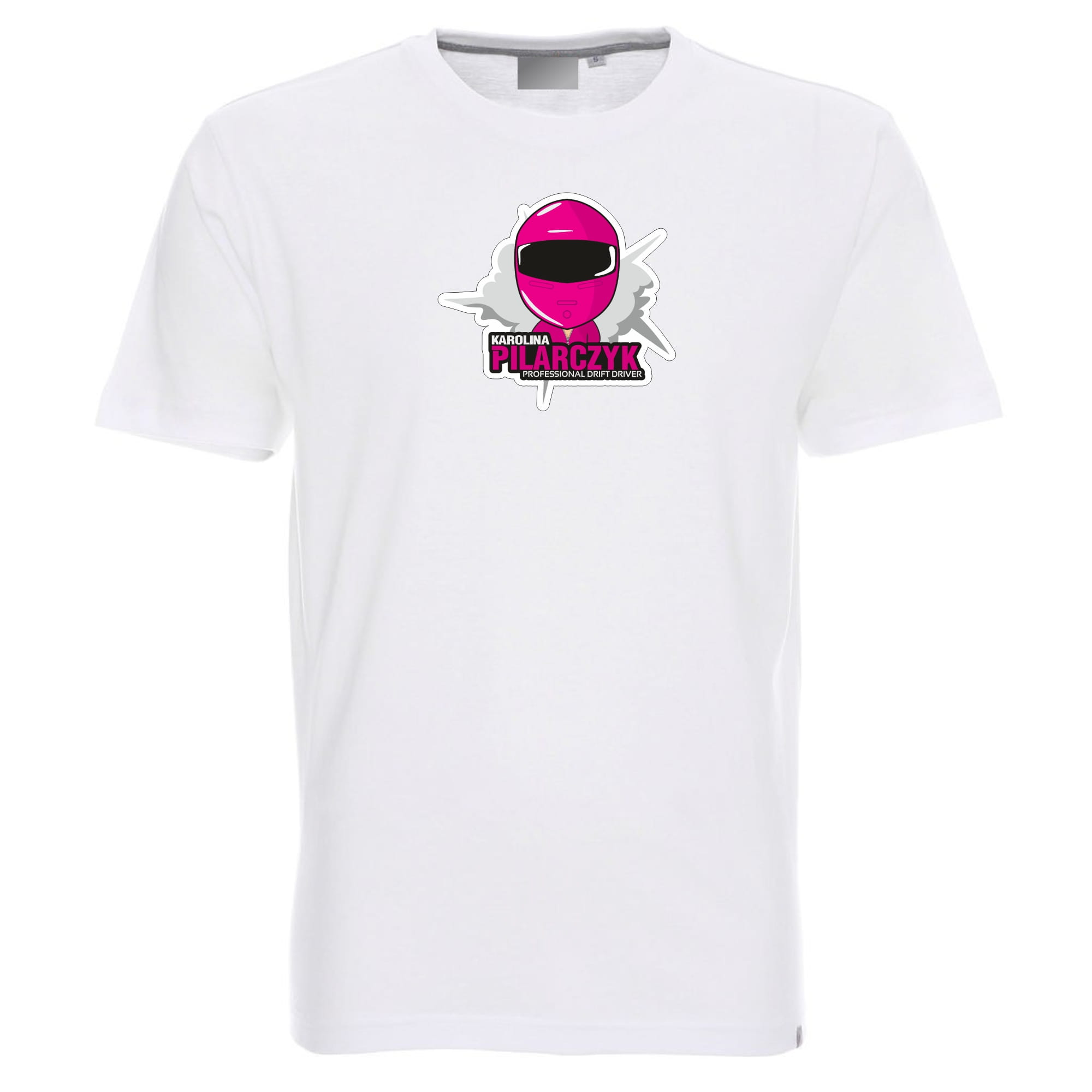 Z przodu koszulki widnieje nadruk mistrzyni driftingu - Karoliny Pilarczyk, który dodaje jej charakteru i unikalności.