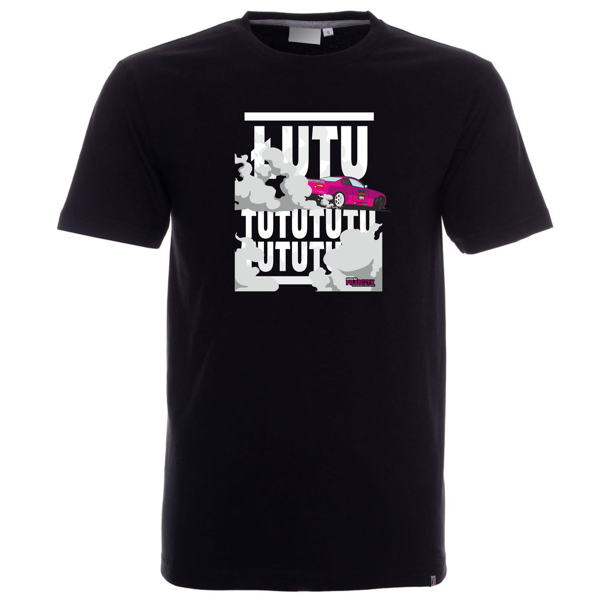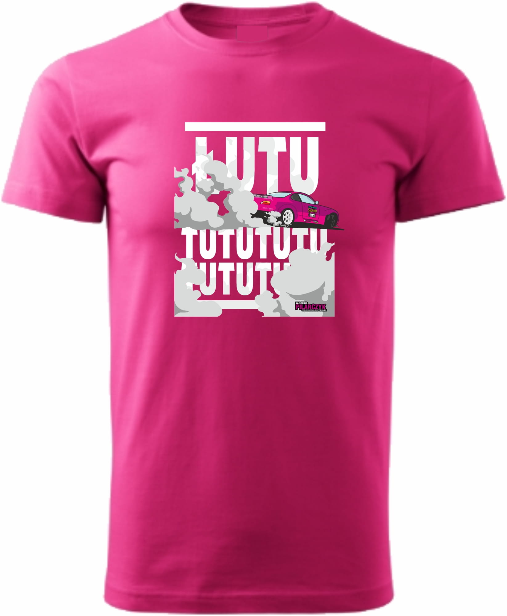 Z przodu koszulki widnieje nadruk mistrzyni driftingu - Karoliny Pilarczyk, który dodaje jej charakteru i unikalności.