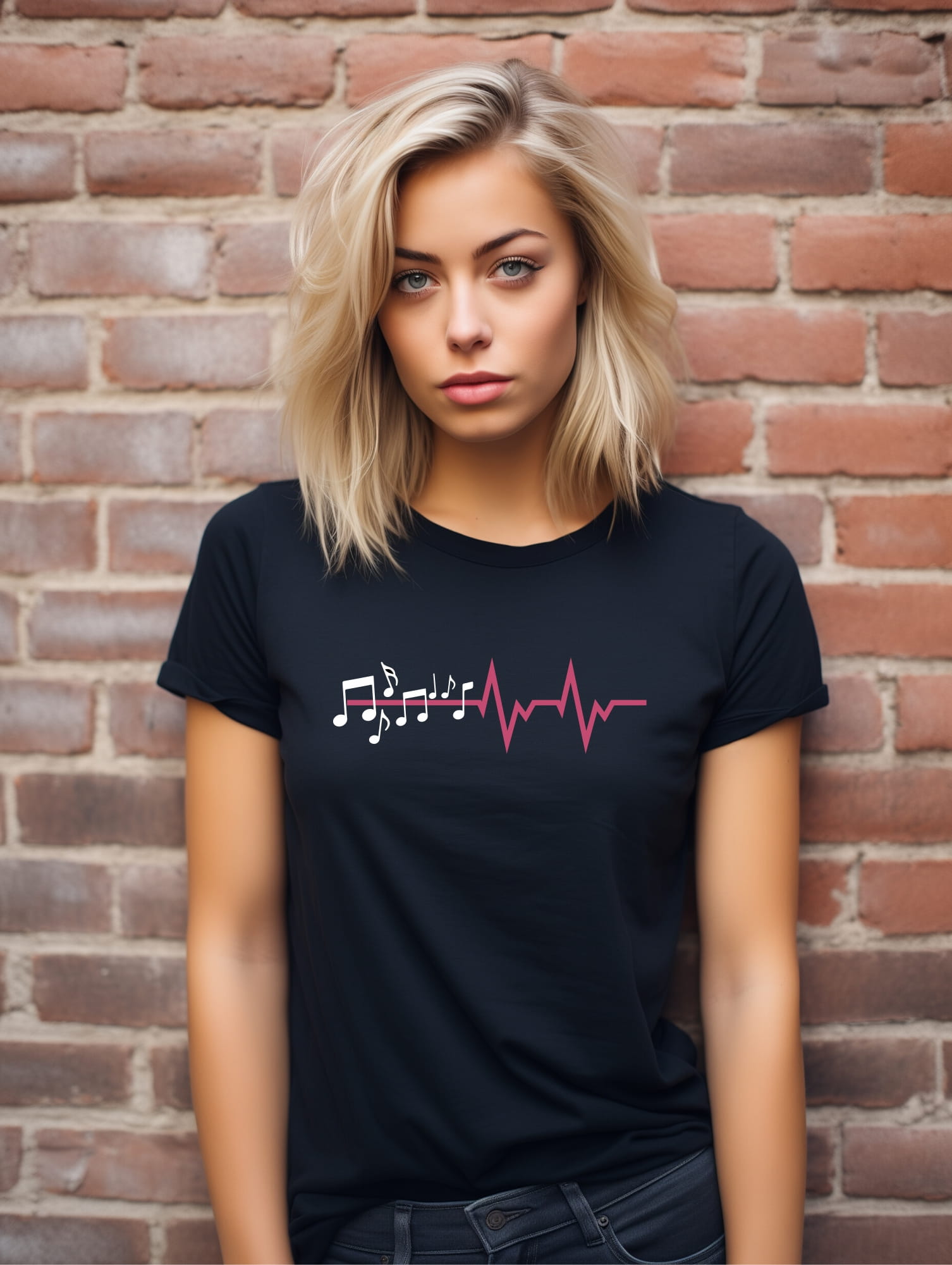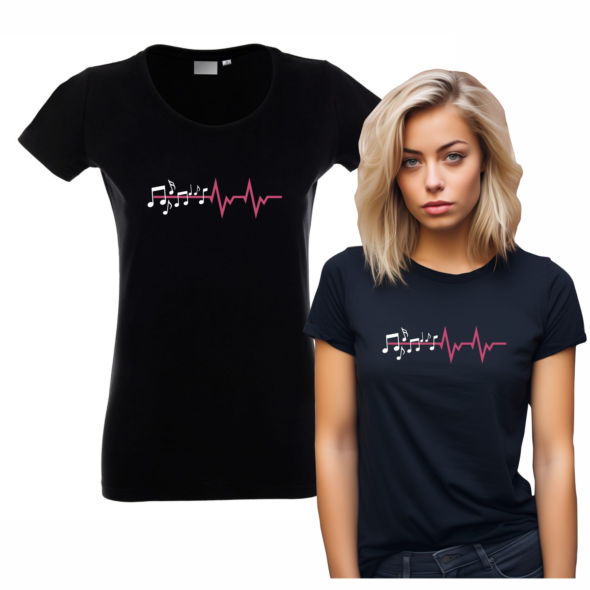 Koszulka damska T-shirt z wzorem Nuty EKG - Idealna dla Pasjonatek Muzyki