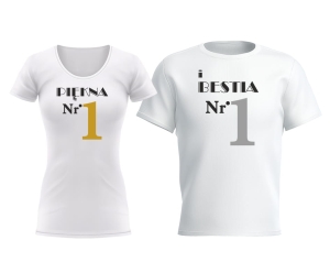 Zestaw t-shirt z nadrukiem dla niej i dla niego "PIĘKNA NR. 1 \ I BESTIA NR. 1"