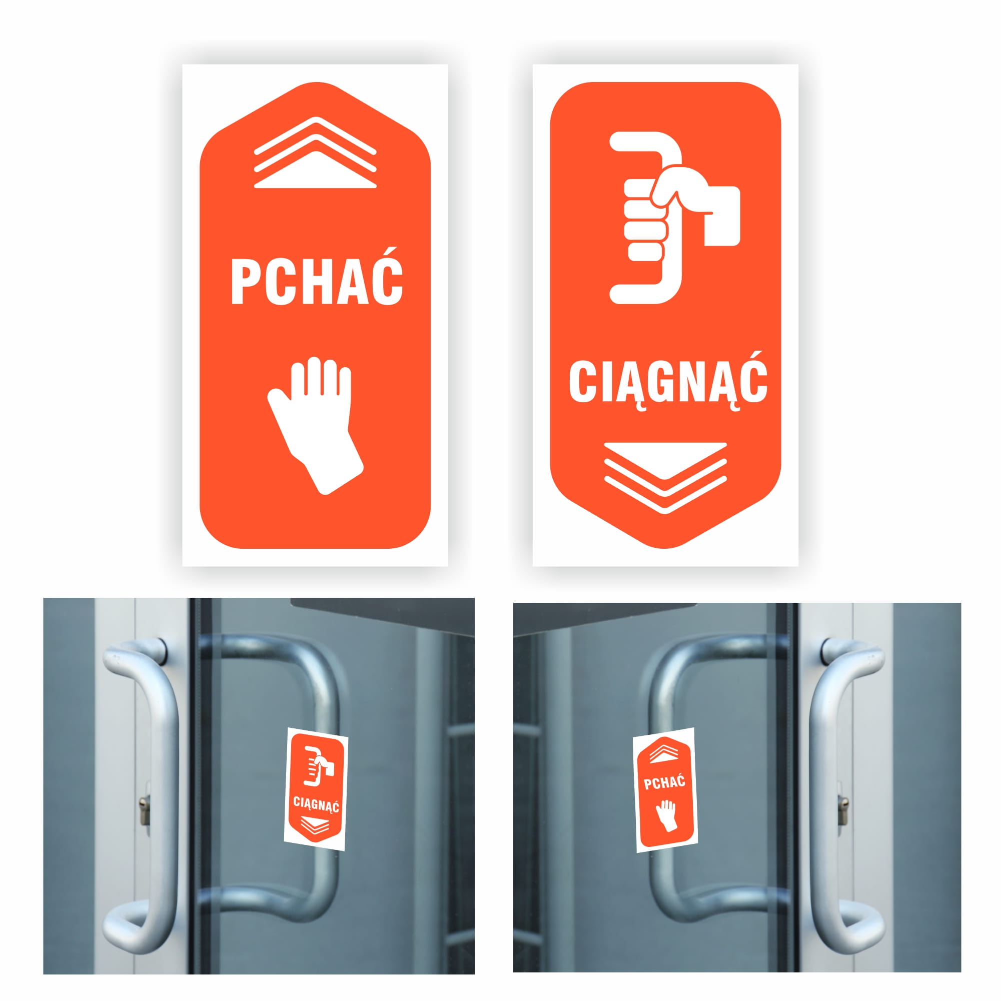 Zadbaj o profesjonalny wygląd swojego lokalu i czytelne oznakowanie drzwi dzięki naszym naklejkom „Pchać” i „Ciągnąć”!