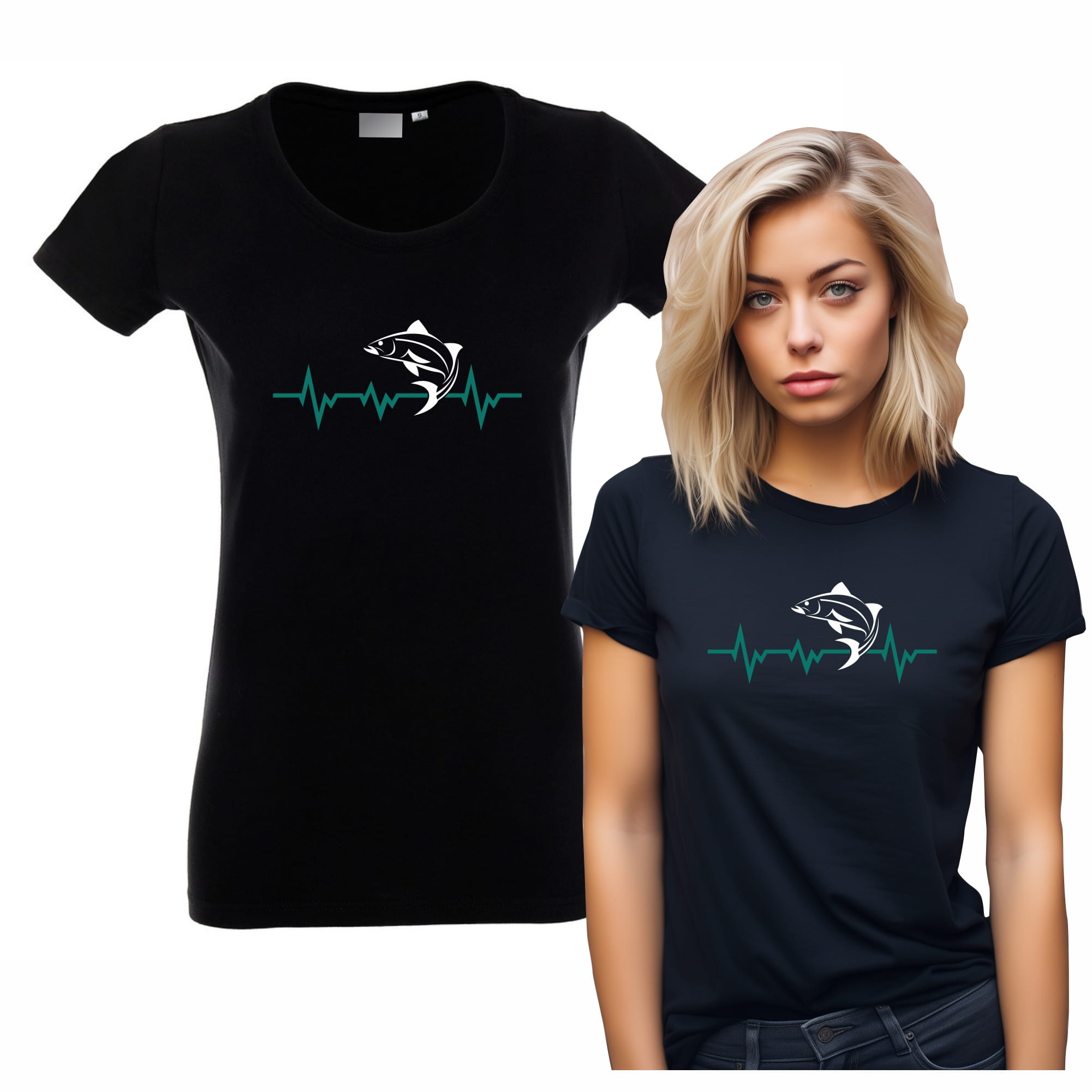 Koszulka damska T-shirt z nadrukiem "Ryba EKG" - Wyraź Swój Rytm Wędkarski!