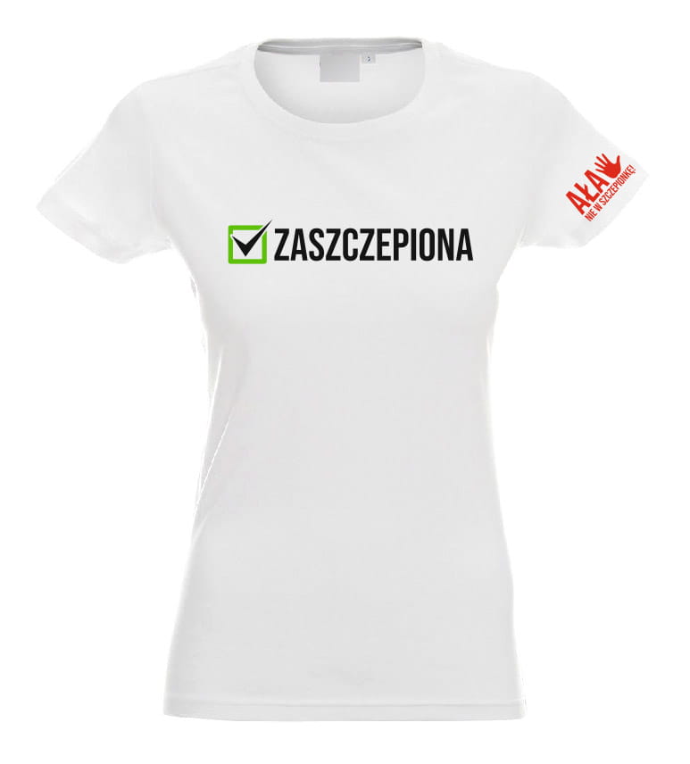 Koszulka damska t-shirt z nadrukiem "ZASZCZEPIONA AŁA NIE W SZCZEPIONKĘ"